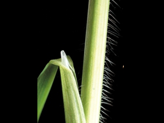 | Blatt | Das jüngste Blatt ist gefaltet, die Blattspreite offen, schwach gerieft und schwach behaart. An den Blatträndern kammartig bewimpert. Blattscheiden dünn behaart und bis oben geschlossen. Kurzes Blatthäutchen, keine Öhrchen. |