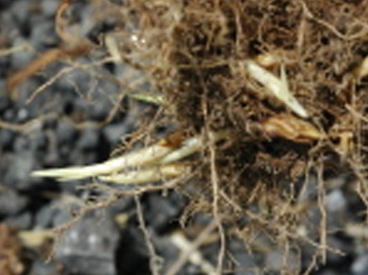| Frucht | Ährchen fallen als ganzes mit Hüllspelze von der Spindel ab. An der Basis der Deckspelze deutlicher Querwulst, der durch eine Furche begrenzt wird. Stielchen am Ende muldenförmig gebuchtet. TKG ca. 4 g. Karyopse ist bauchseitig mit einer Längsfurche versehen und an der Spitze fein behaart. |